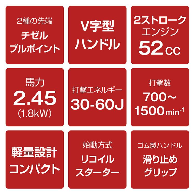 ■52ccエンジン&最大60Jの強力打撃で、硬いコンクリートもスピーディーに粉砕