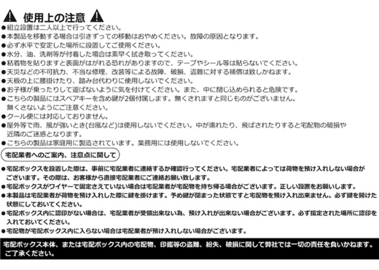 一目で宅配ボックスとわかる案内用紙が付属します。