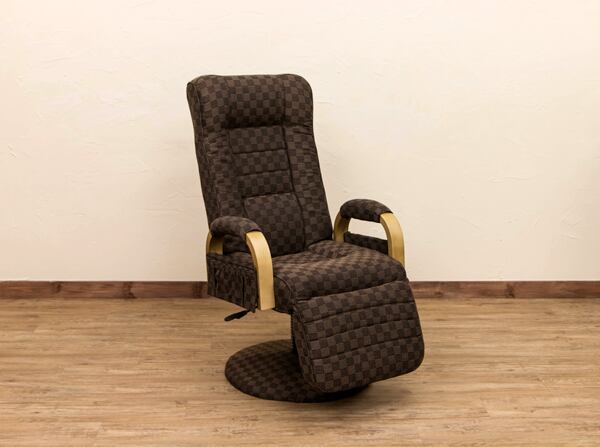【送料無料】昇降式リクライニングチェア フット付き レバー式 ブラウン 回転式