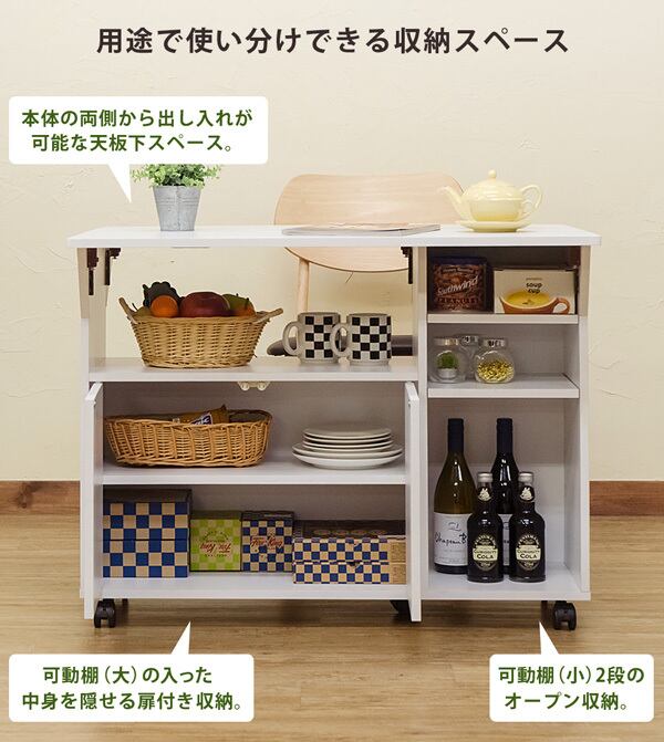 【送料無料】バタフライカウンターテーブル 90幅 収納付きテーブル 机 キャスター付き
