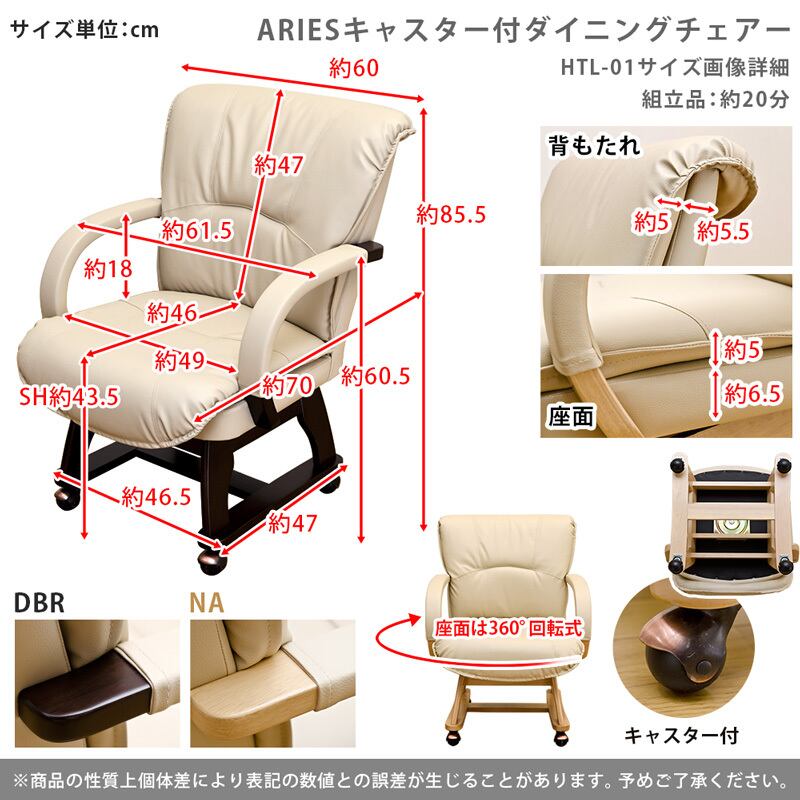 【送料無料】ARIES キャスター付きダイニングチェア 天然木 PVCレザー 合皮 革 キャスター付き
