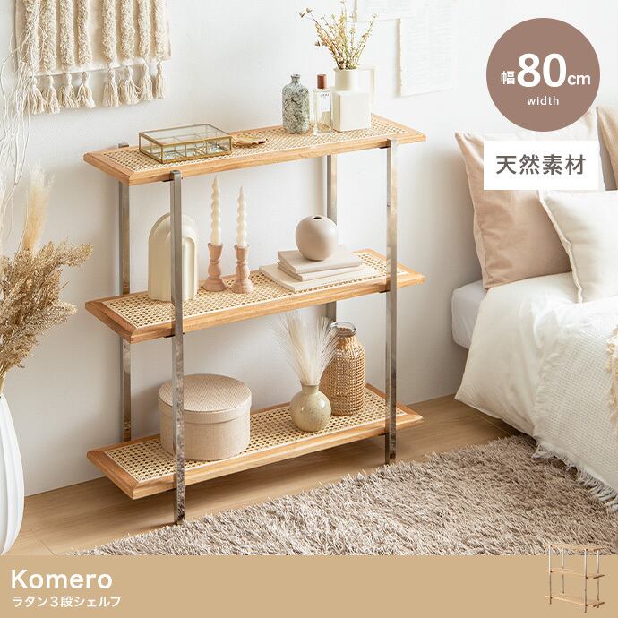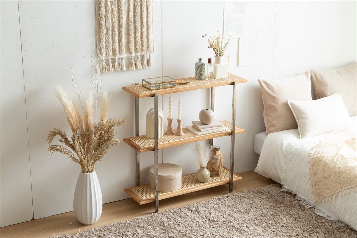 ナチュラルさの中に一味違う大人な印象を持つ、天然素材のラタンを用いた『Komero』3段シェルフ