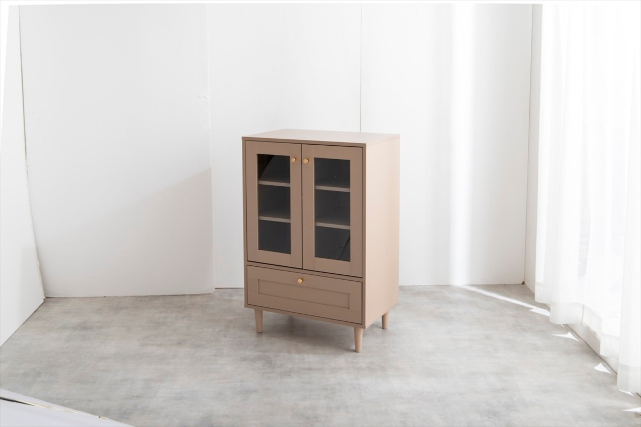 海外インテリア風の框デザインをあしらった『Calan(カラン)』ガラスキャビネット
