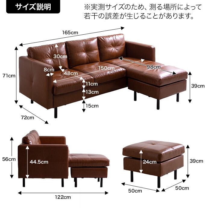 【3人掛】細部にまでこだわった深みのあるレザー風カウチソファ