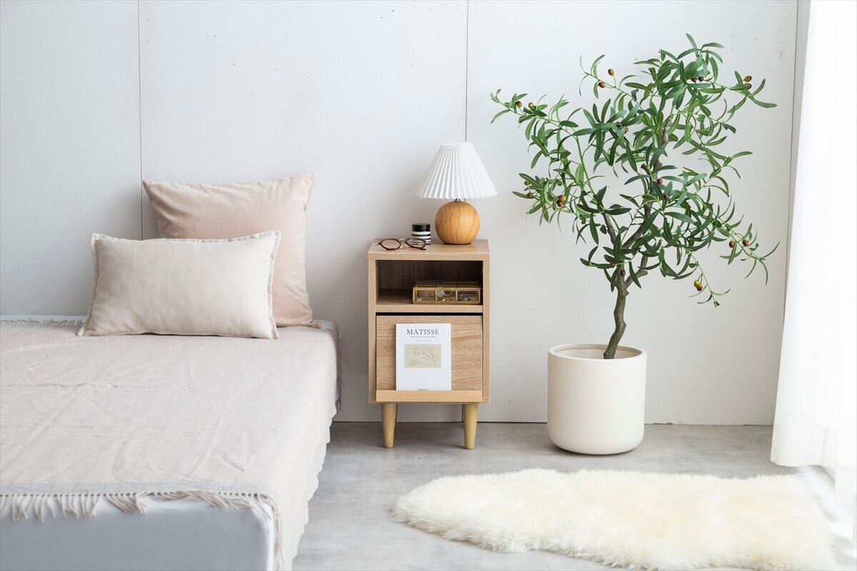 フラップ扉で生活感を隠して、おしゃれに魅せる『Tony(トニー)』のサイドキャビネット