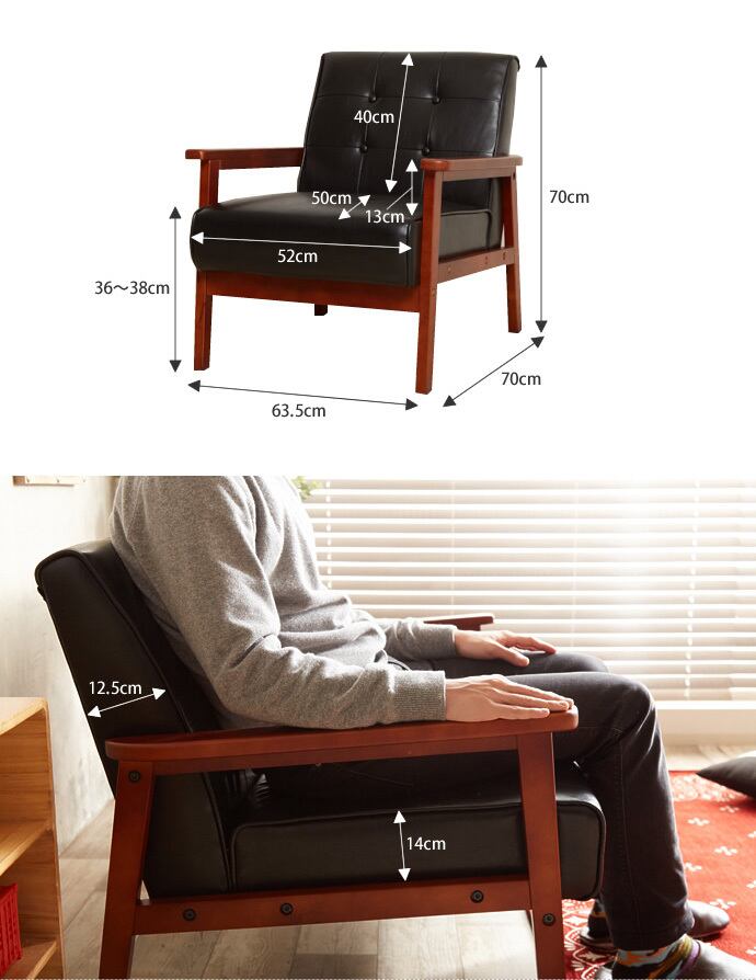 【送料無料】NEW RETRO オリジナル 1人掛けソファ 天然木 PUレザー 椅子