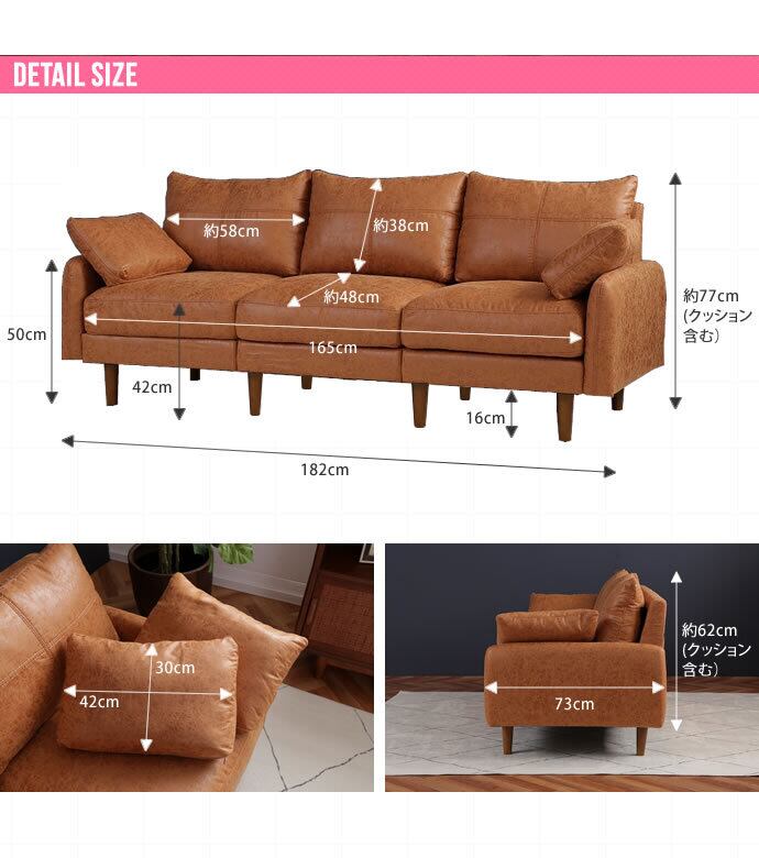 幅約182cm×奥行約73cm×高さ(クッション含む)約77cm