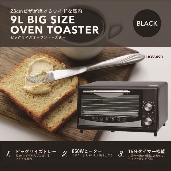 【送料無料】ビッグサイズトースター タイマー機能付き ブラック