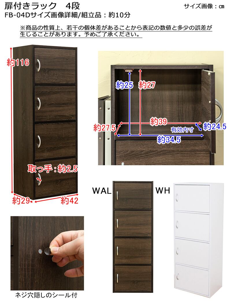 【送料無料】扉付きラック 4段 棚 収納 大容量 木目調