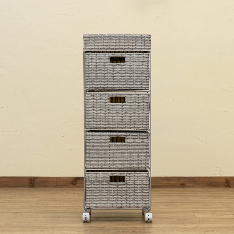 【送料無料】ラタン調 チェスト4段 ランドリーチェスト 収納 棚 ラック